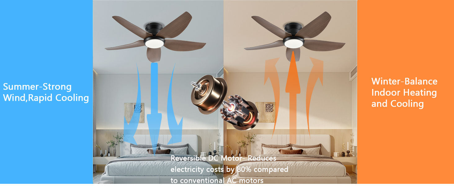 • 【Quiet Reversible Motor Ceiling Fan】: The high-quality energy efficient ceiling fan provides a comfortable experience throughout the year. Operating quietly with a noise level below 35dB, it offers forward and reverse modes. In summer, enjoy cool strong winds to dissipate heat, while in winter, promote air circulation to dispel cold.