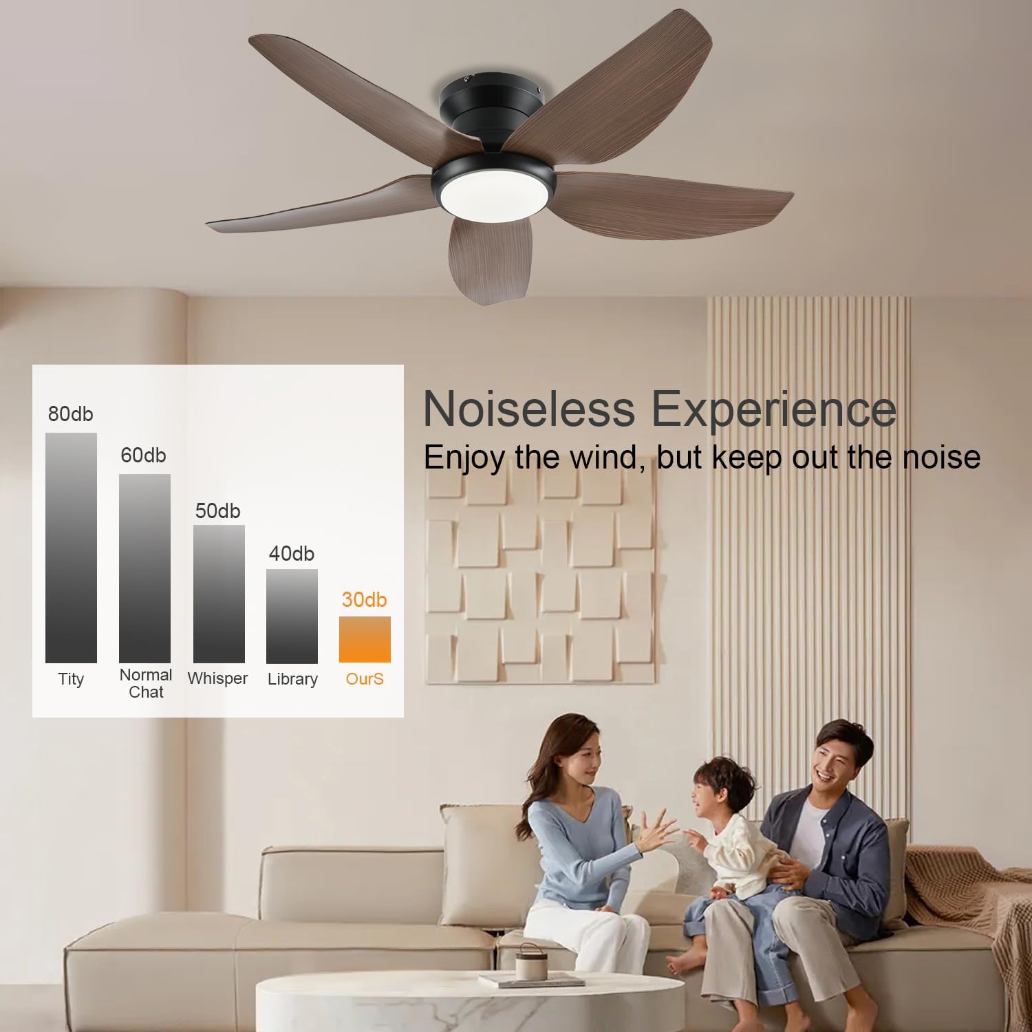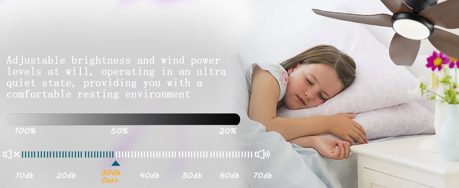 Our fans operate exceptionally quietly thanks to advanced DC motor technology. At the highest setting, they produce less than 35 dB - quieter than a whisper. On lower settings, they're virtually silent, making them ideal for bedrooms, nurseries, and quiet living spaces.