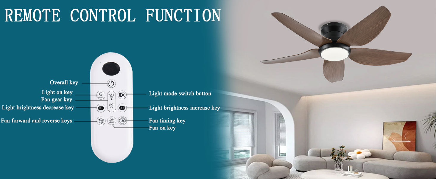 This low profile flush mount ceiling fan is perfect for my kitchen. I love that it comes with a remote control that works with both the fan and the light. The light is bright while the fan is quiet and it kee keeps the room nice and cool.
