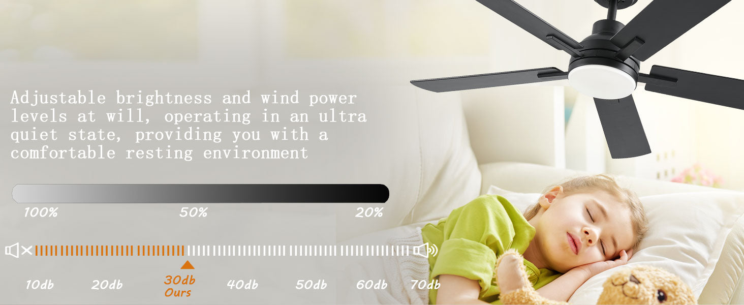 Our fans operate exceptionally quietly thanks to advanced DC motor technology. At the highest setting, they produce less than 35 dB - quieter than a whisper. On lower settings, they're virtually silent, making them ideal for bedrooms, nurseries, and quiet living spaces.