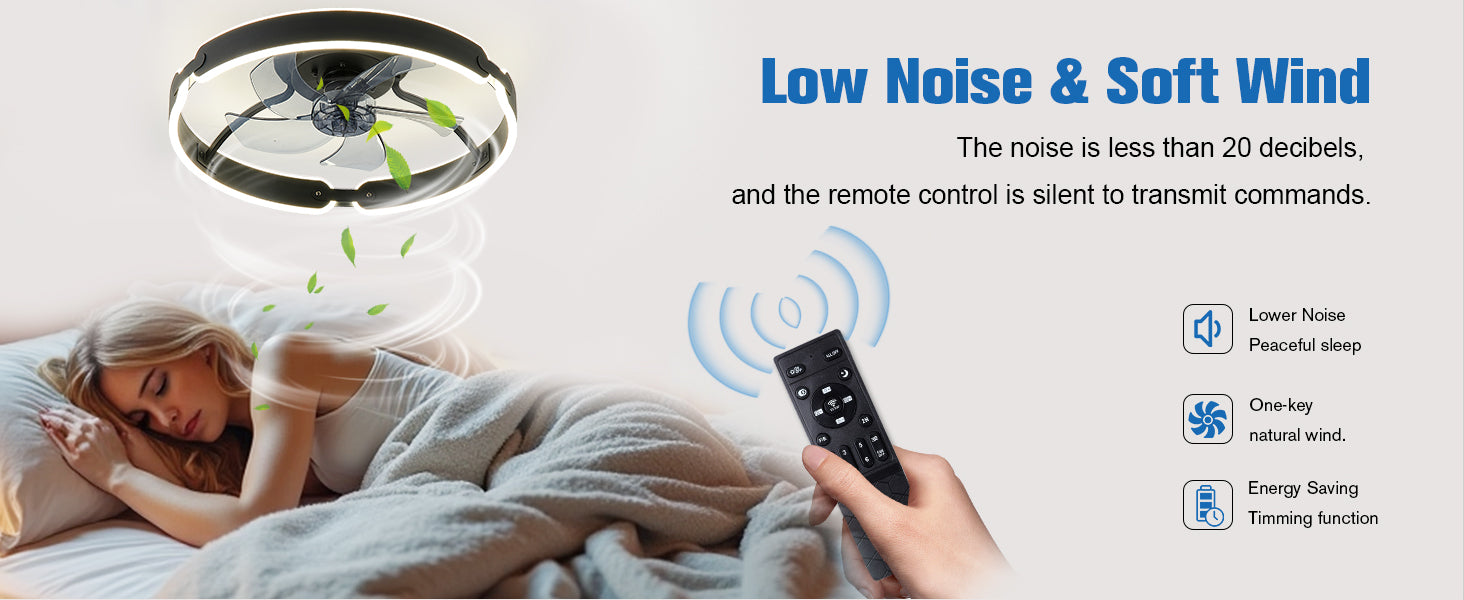 Our fans operate exceptionally quietly thanks to advanced DC motor technology. At the highest setting, they produce less than 35 dB - quieter than a whisper. On lower settings, they're virtually silent, making them ideal for bedrooms, nurseries, and quiet living spaces.