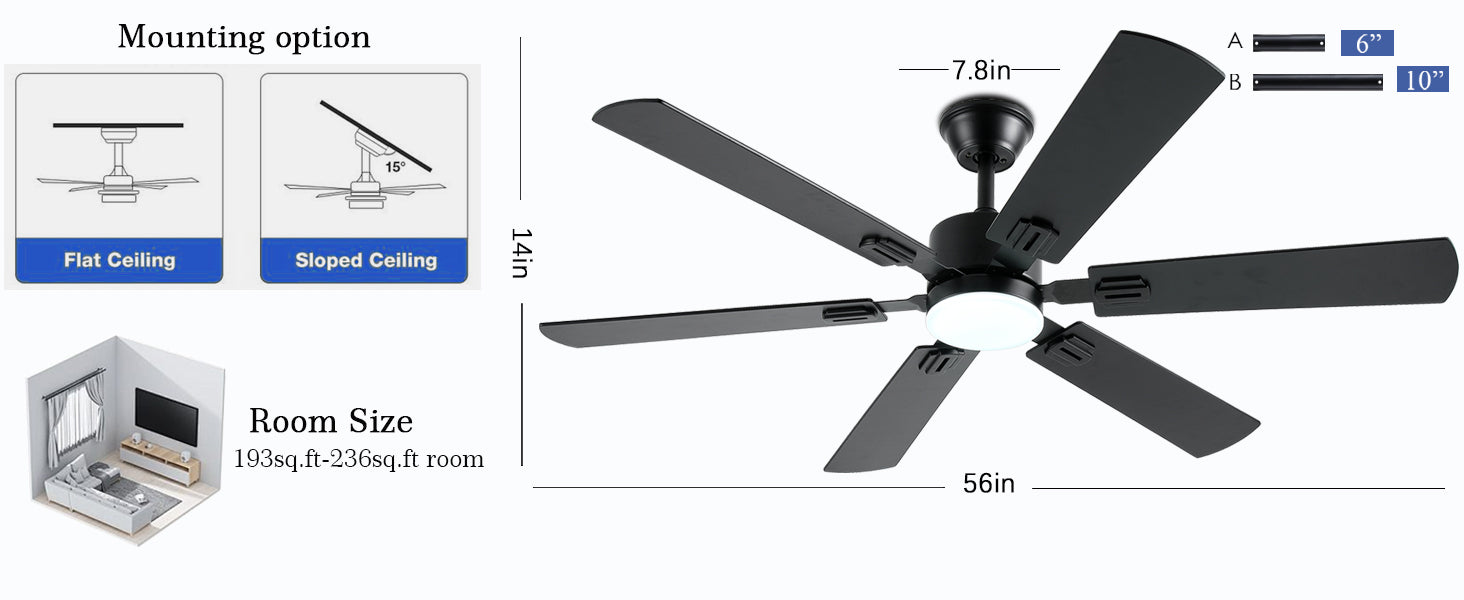 • 【Simple 2 down rod installation】 Our ceiling fan with light is equipped with 6" and 10" down rods, and you can freely choose the height according to the size of the room, and it can be installed on both the flush ceiling and the ceiling with a 15° tilt. The installation is also very simple. We provide detailed instructions and installation videos (on our product page) to help you complete the installation smoothly.