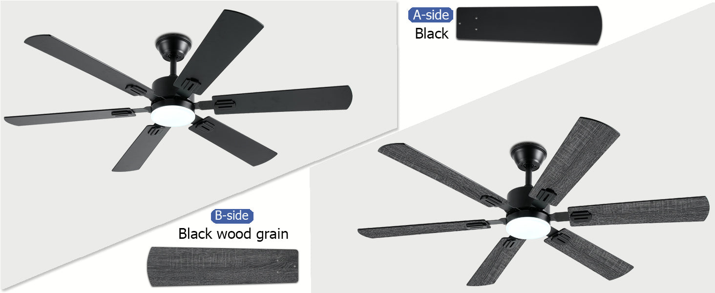 • 【Fashionable and modern ceiling fan】:FUMLTP large ceiling fan has 6 pieces of double-side blade splints, with a diameter of 56 inches, which can provide a larger and wider air flow for the room. The stylish and simple black and black wood grain fan blades can enhance the style and comfort of your room, suitable for bedrooms, living rooms, offices, kitchens or other interior spaces. In addition, this is also an outdoor ceiling fan suitable for terraces, gazebos, and other outdoor spaces that cannot be directly exposed to the rain.