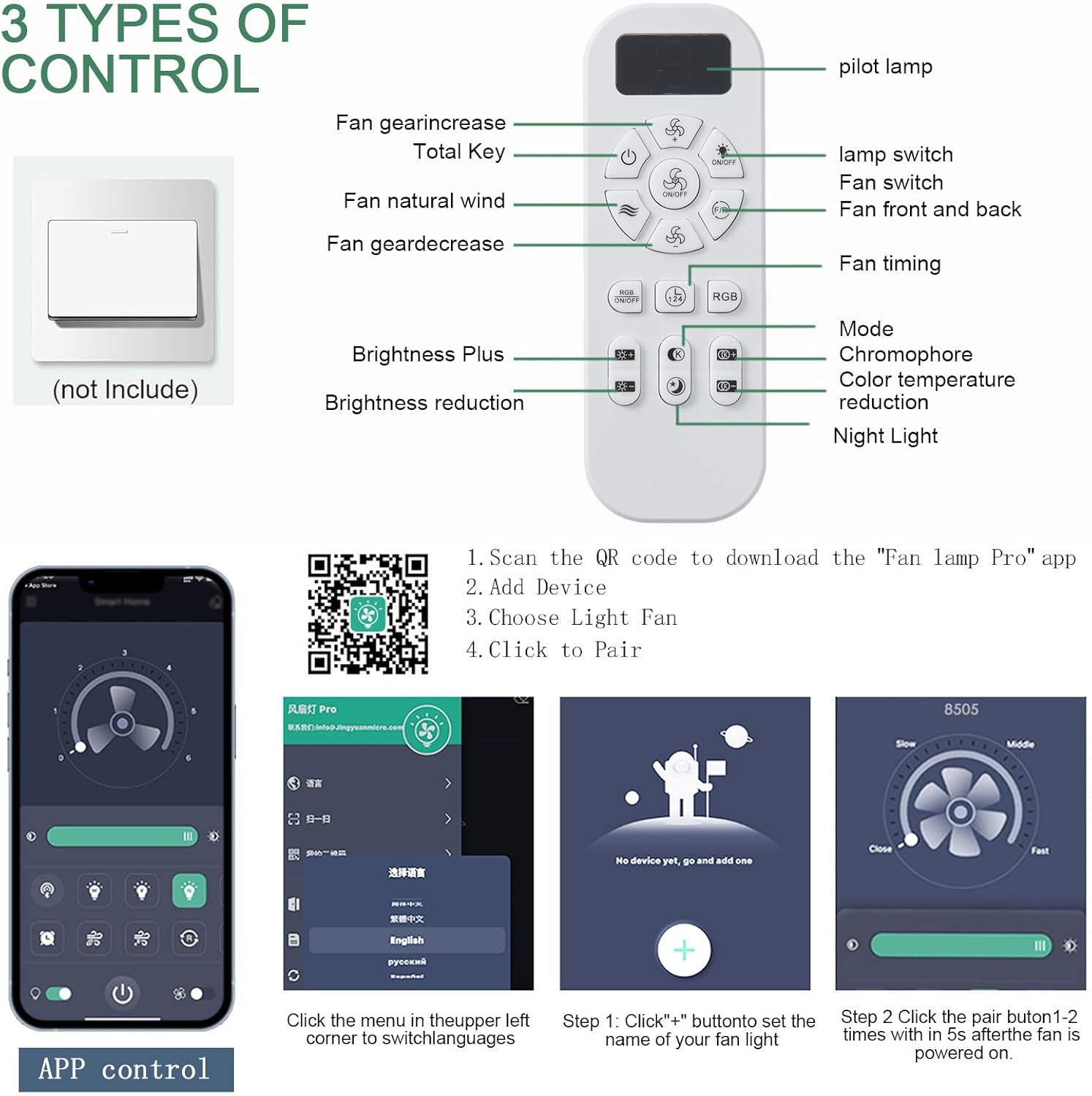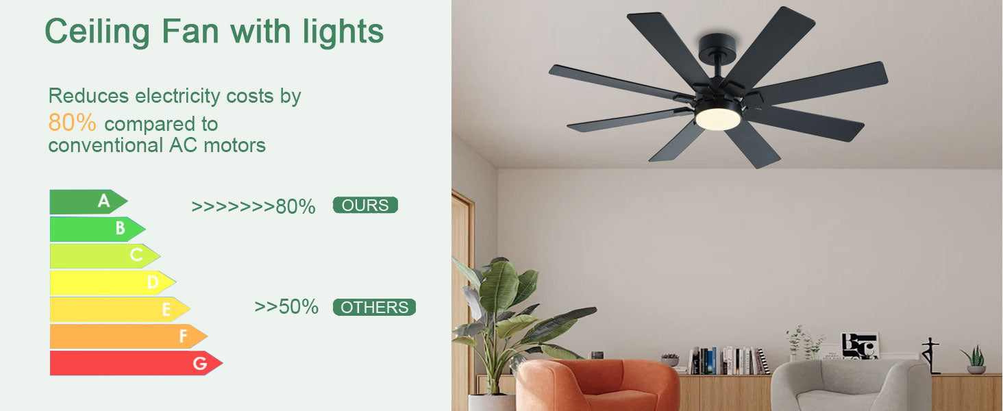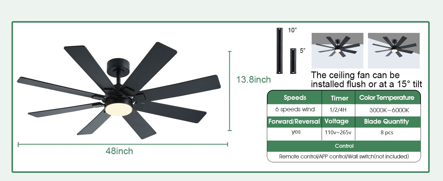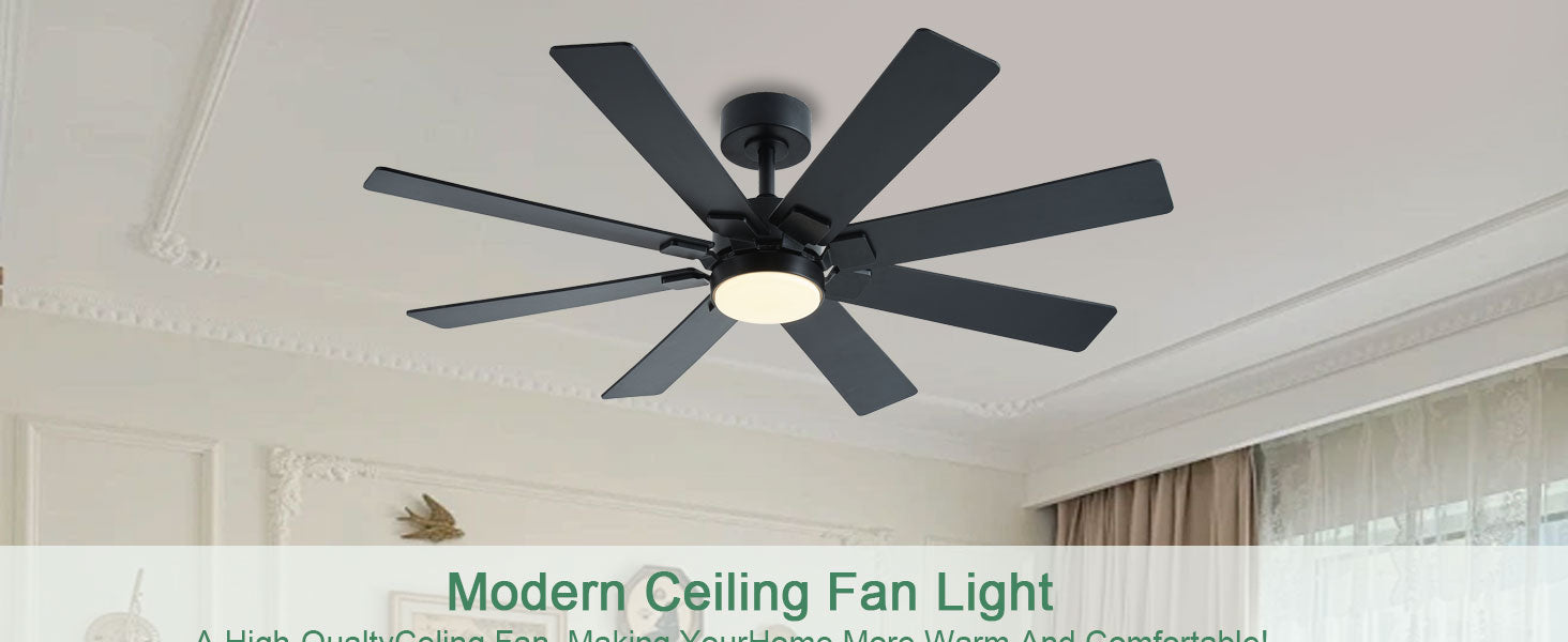• 【Ceiling Fans with Lights and Remote】: This black ceiling fan with lights can be controlled using a remote and app, allowing for operation in forward/reverse directions, 8-speed adjustment, and 3 light colors. Easily adjust light brightness and color to suit different environmental needs, set 1/2/4H timers, and control the fan and light separately for maximum convenience and ease of use.