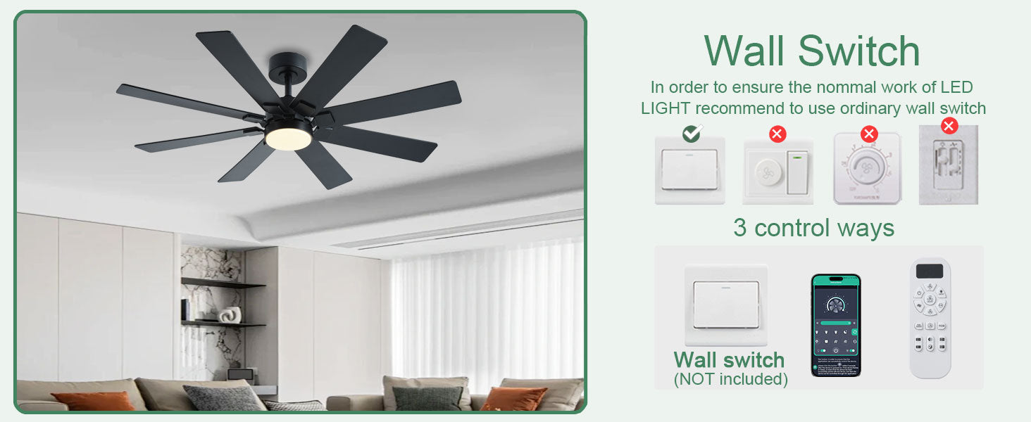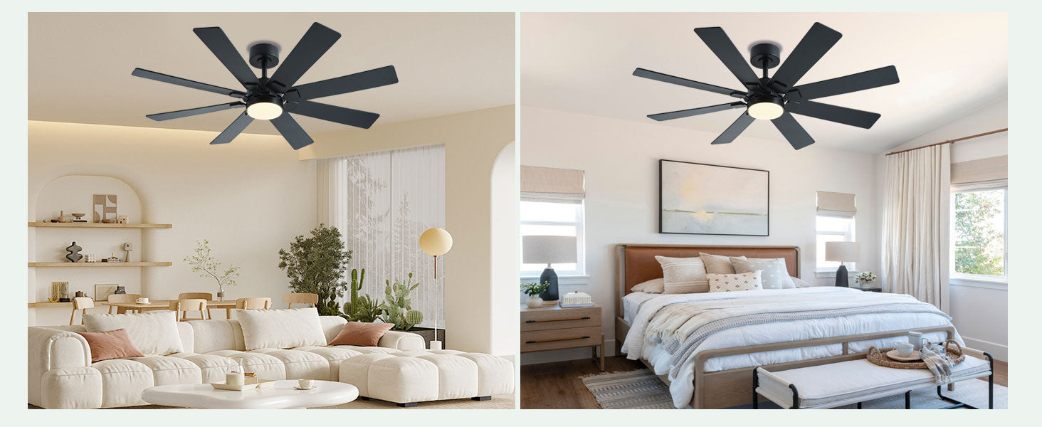 I installed this 48-inch ceiling fan in my sister’s living room and it worked great. The 8-blade design moves a lot of air quietly, and the dimmable LED lighting looks modern and bright. The remote and app controls make it really easy to adjust fan speed, lighting, and timer settings. It’s a great fit for both function and style.