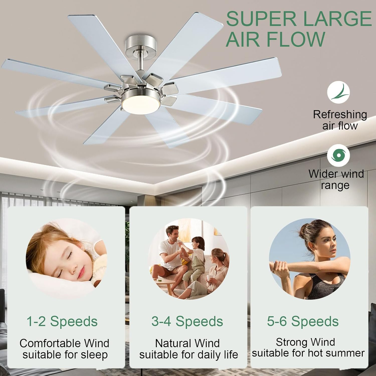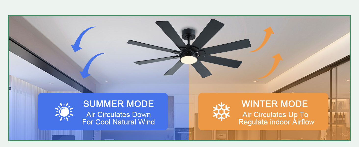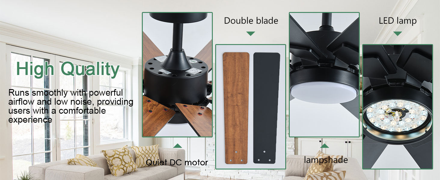 • 【Quiet Reversible Motor Ceiling Fan】: The high-quality energy efficient ceiling fan provides a comfortable experience throughout the year. Operating quietly with a noise level below 35dB, it offers forward and reverse modes. In summer, enjoy cool strong winds to dissipate heat, while in winter, promote air circulation to dispel cold.