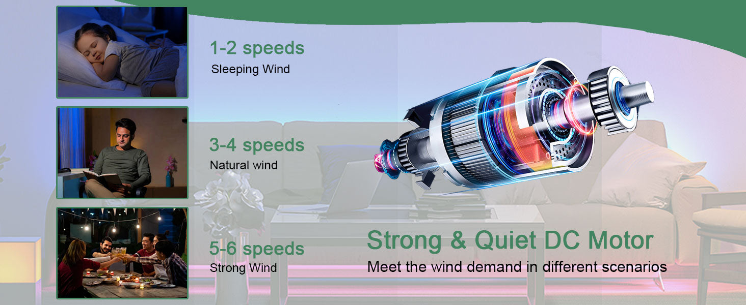 Our fans operate exceptionally quietly thanks to advanced DC motor technology. At the highest setting, they produce less than 35 dB - quieter than a whisper. On lower settings, they're virtually silent, making them ideal for bedrooms, nurseries, and quiet living spaces.