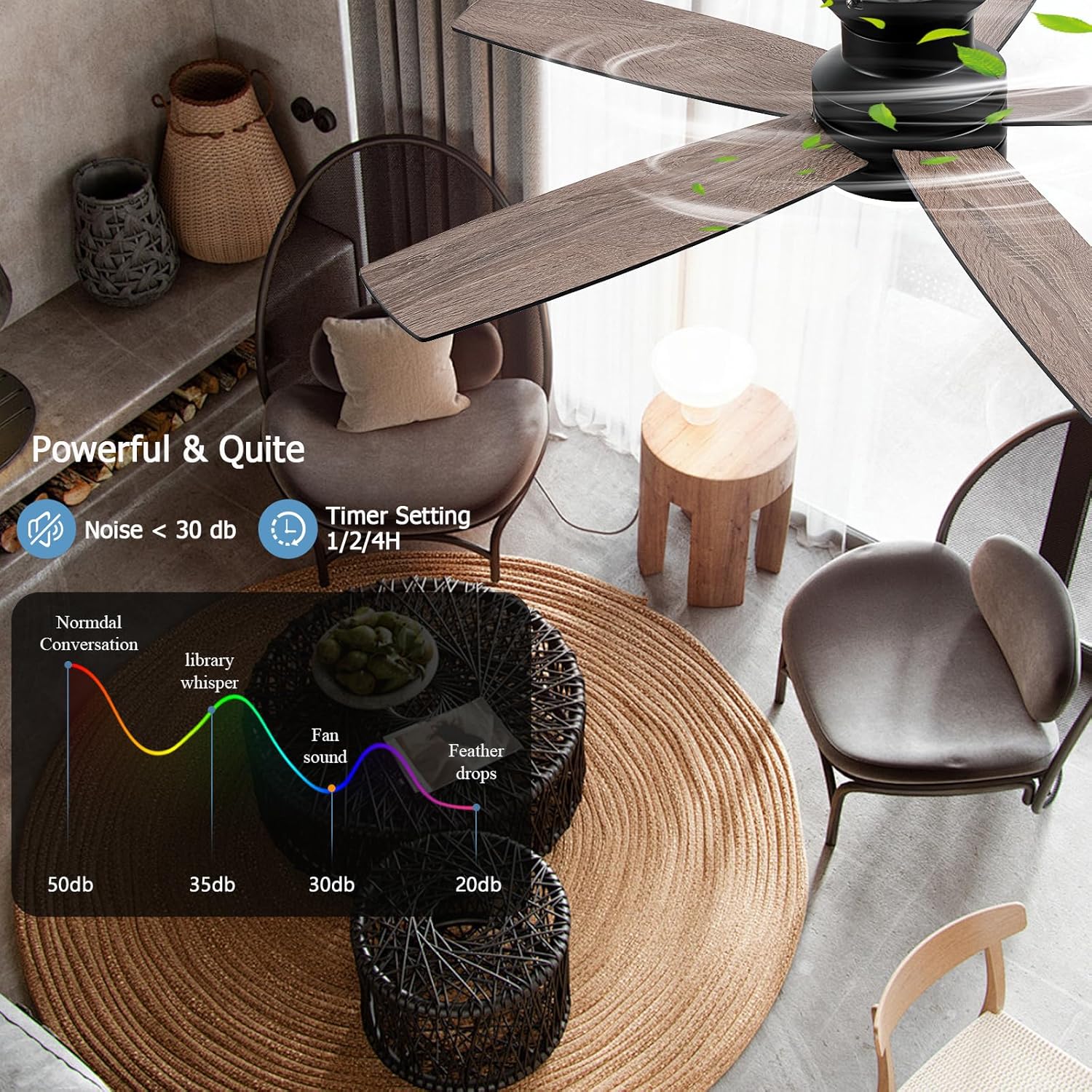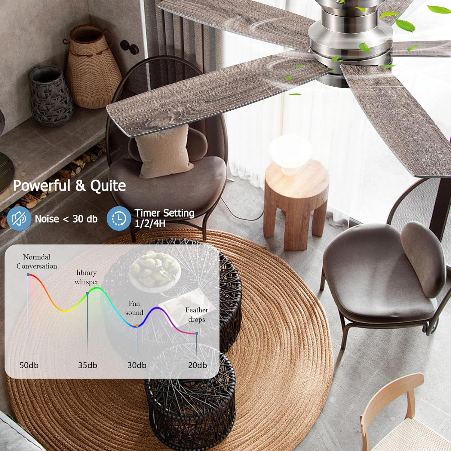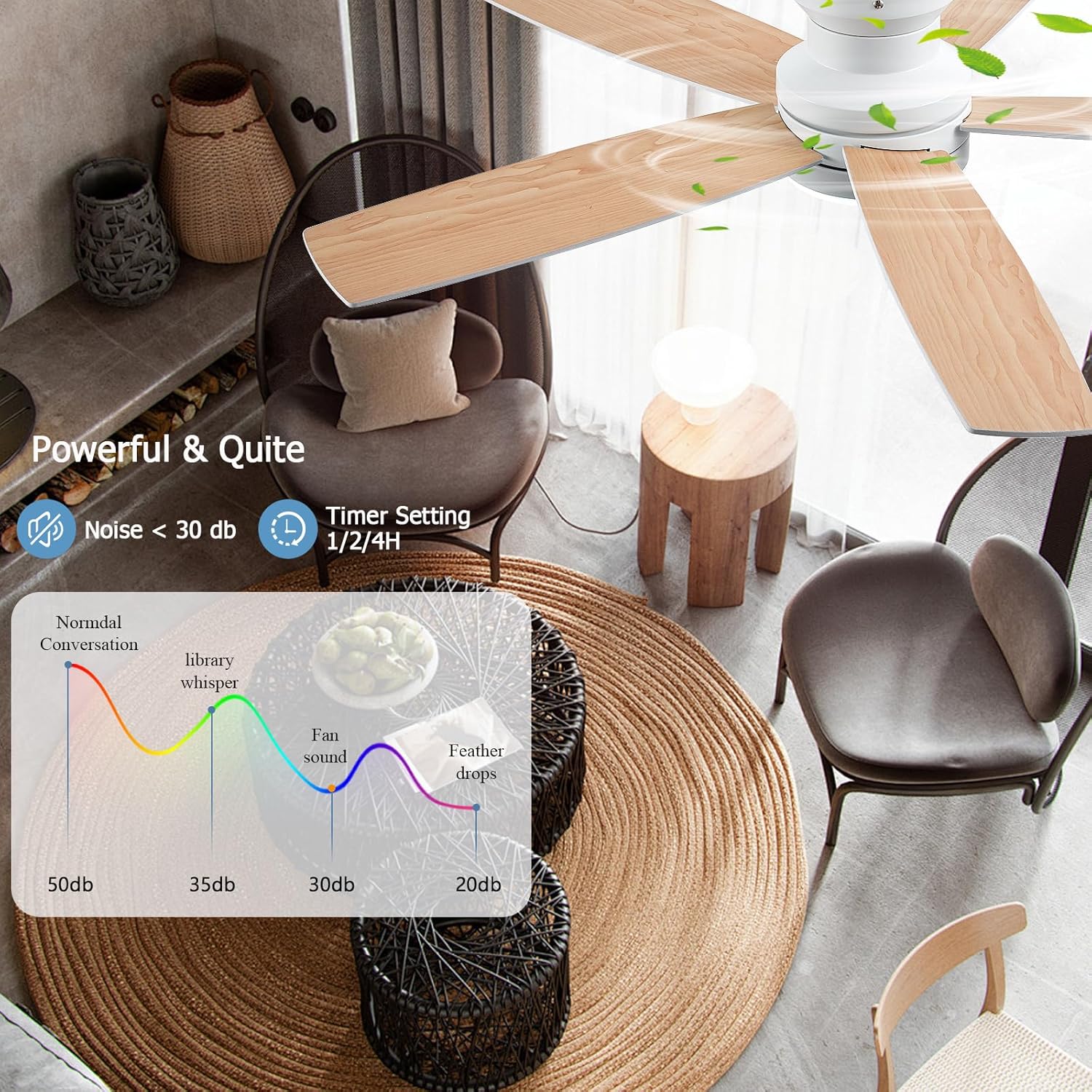 • 【Ceiling Fan with Remote/APP Control】: Control the fan light via the remote control or the "fan lamp pro" app on your phone. Easily adjust light brightness and color, 6-speed settings, 1/2/4H timers and the fan and light separately ON/OFF, allowing you to easily adjust settings from anywhere in the room or outdoor places for optimal comfort.