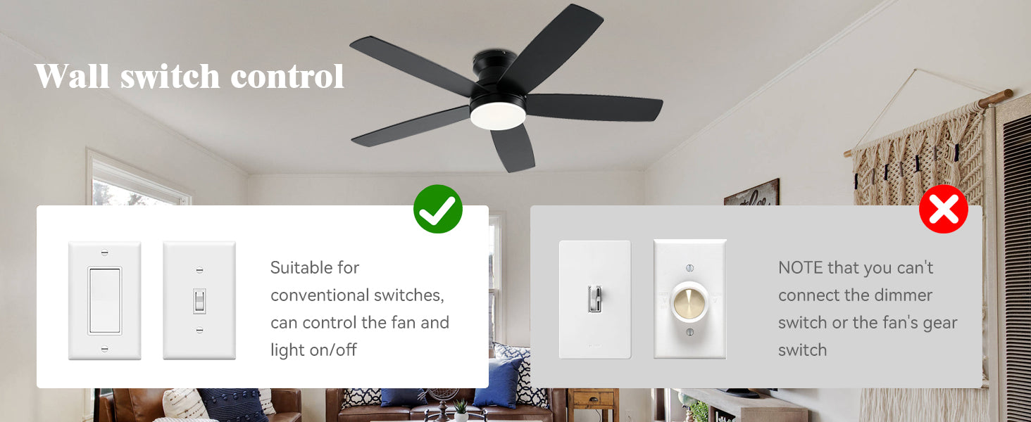 • 【Dual - Sided Fan Blades】:Our flush mount ceiling fan with lights comes with double - sided fan blades, one side in nickel and the other in wood grain. Switch between the two styles to match different interior decor.