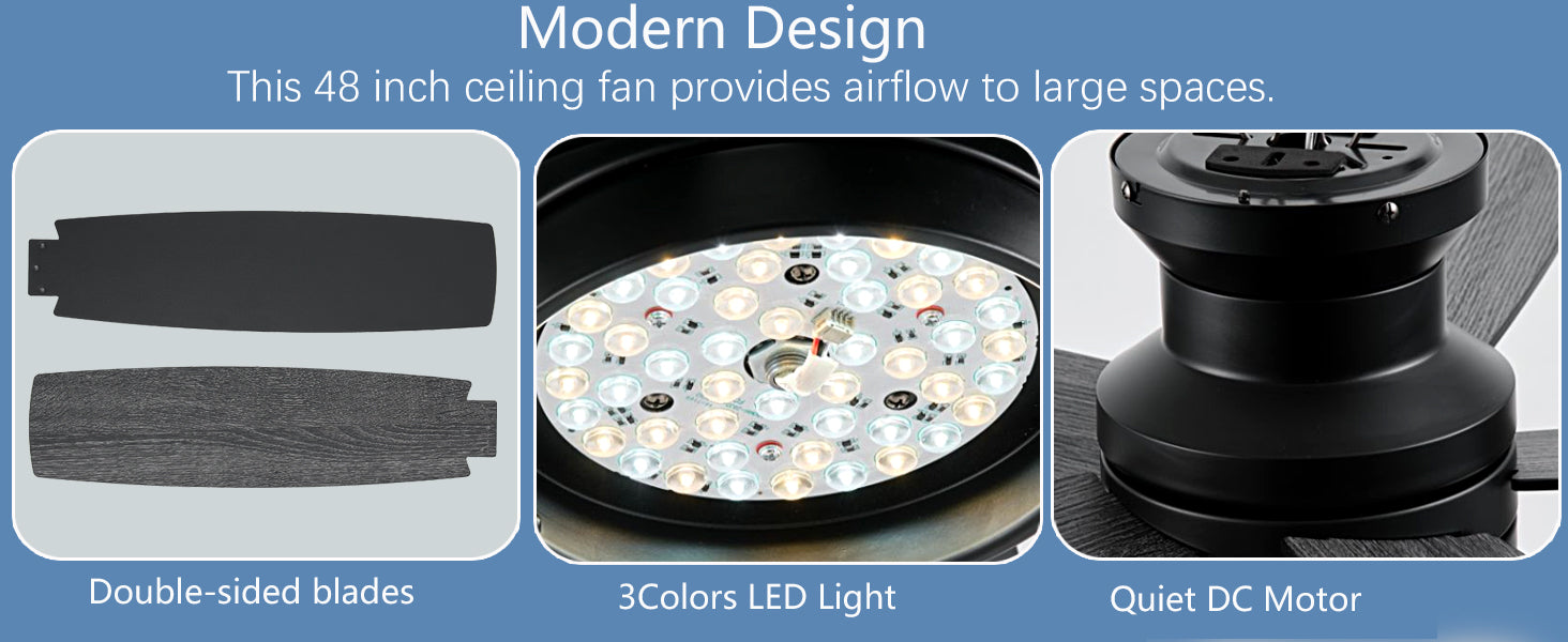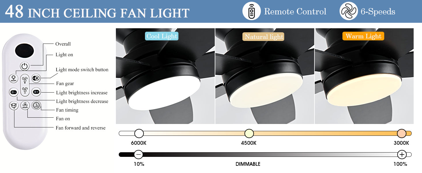 • 【3CCT Dimmable LED Ceiling Fans】: Our ceiling fans features dimming capabilities from 10% to 100%, ensuring you find the ideal lighting for any occasion. You can select from 3000K warm white, 4000K natural white, and 6000K cool white light temperatures on your space needs.
