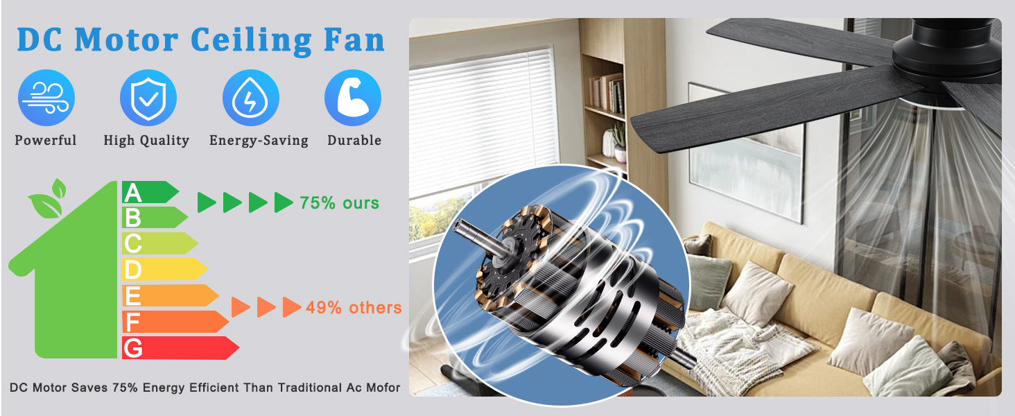 • 【Silent & Reversible DC Motor】: Equipped with a reversible DC motor that operates silently, ensuring a peaceful environment while providing powerful air circulation, keeping you warm in winter and cool in summer. Our low profile ceiling fan boasts an A-level energy efficiency rating, reducing power loss by up to 80% compared to traditional fans.