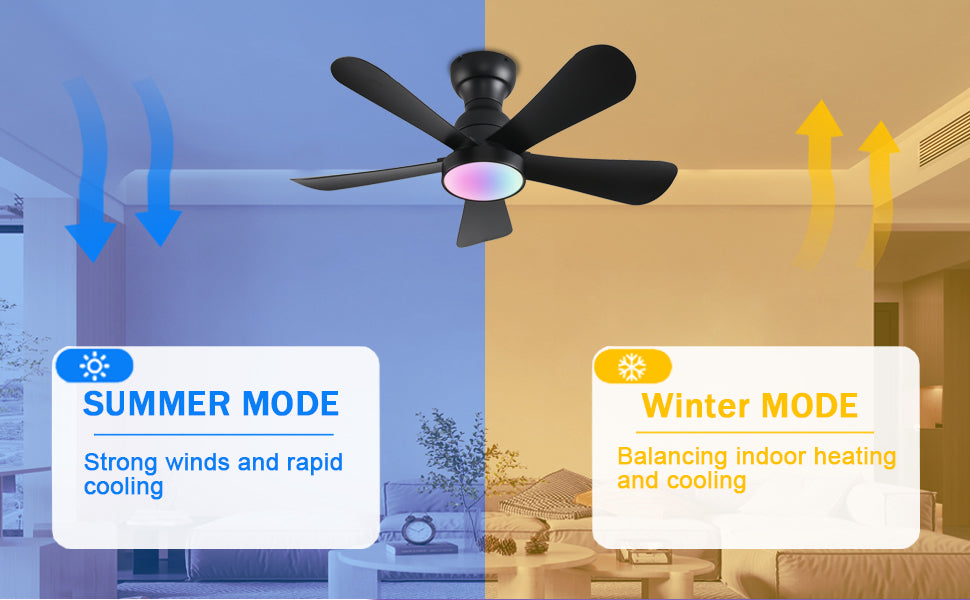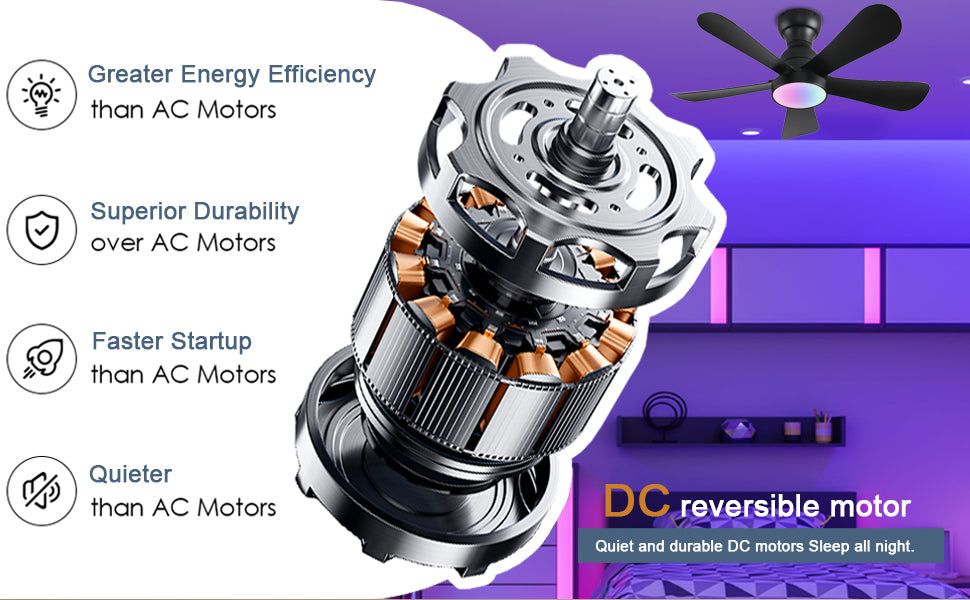 • 【Reversible dc motor】The flush mount ceiling fan adopts a high-speed reversible motor, bringing a sufficiently good wind experience. In summer, our ceiling fans with lights transmits cool air downward, and in winter, it optimizes air circulation. The recessed ceiling fan with a light can be used all year round and is better than traditional AC motors.