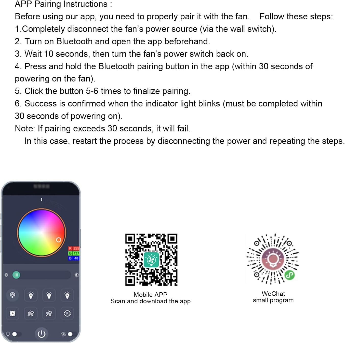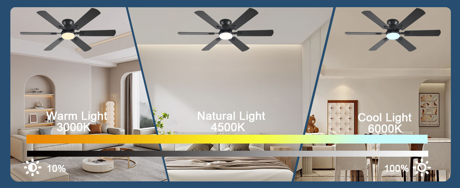 • 【Adjustable Lighting Ceiling Fan】: Choose different brightness levels and color temperatures based on your space needs. A cozy night is perfect for soft lighting, while family game nights or study sessions may require brighter light. Our intelligent ceiling fan light features dimming capabilities from 10% to 100%, ensuring you find the ideal lighting for any occasion. You can select from 3000K warm white, 4000K natural white, and 6000K cool white light temperatures.