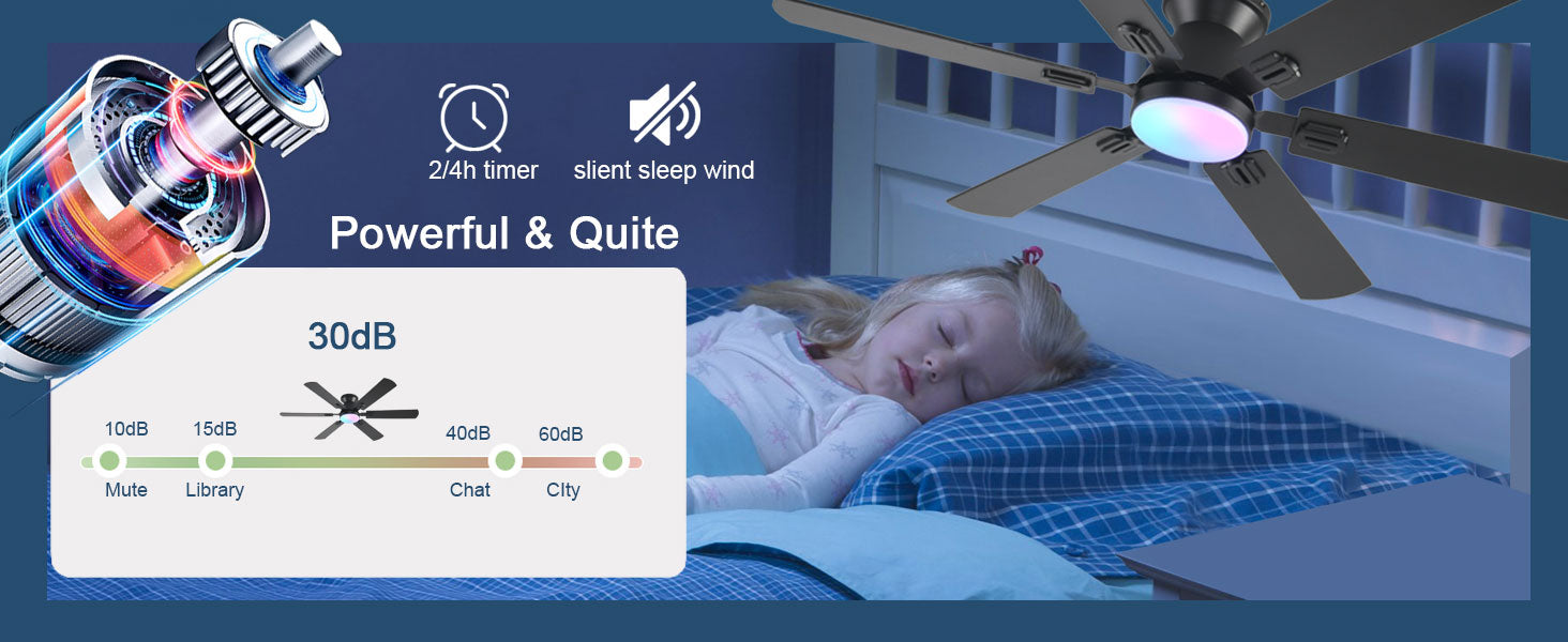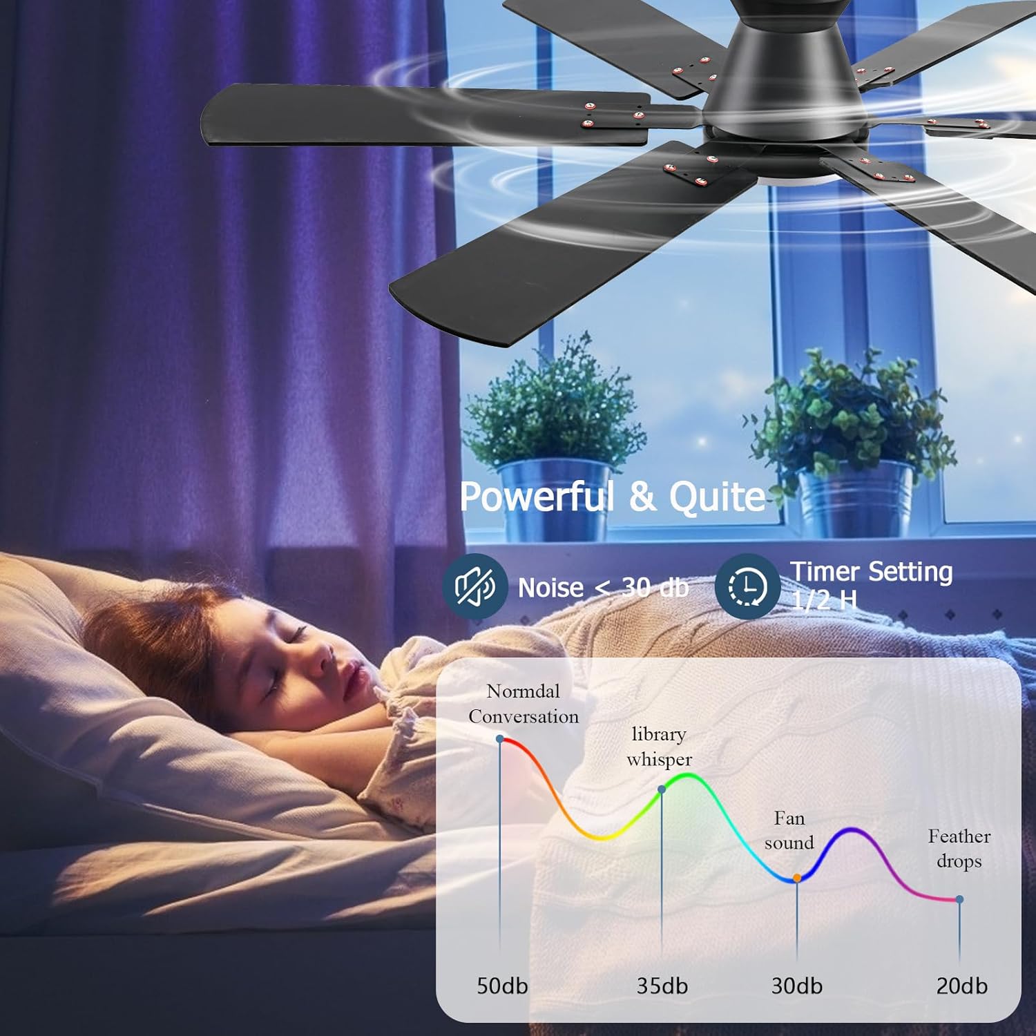 • 【Ultra-Quiet Ceiling Fan】: This black ceiling fans is specifically designed for light sleepers, aiming to provide you with comfortable sleep and a tranquil living environment. Operating at a noise level as low as 30dB, it is nearly silent.