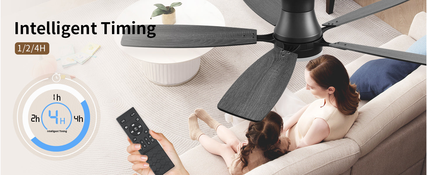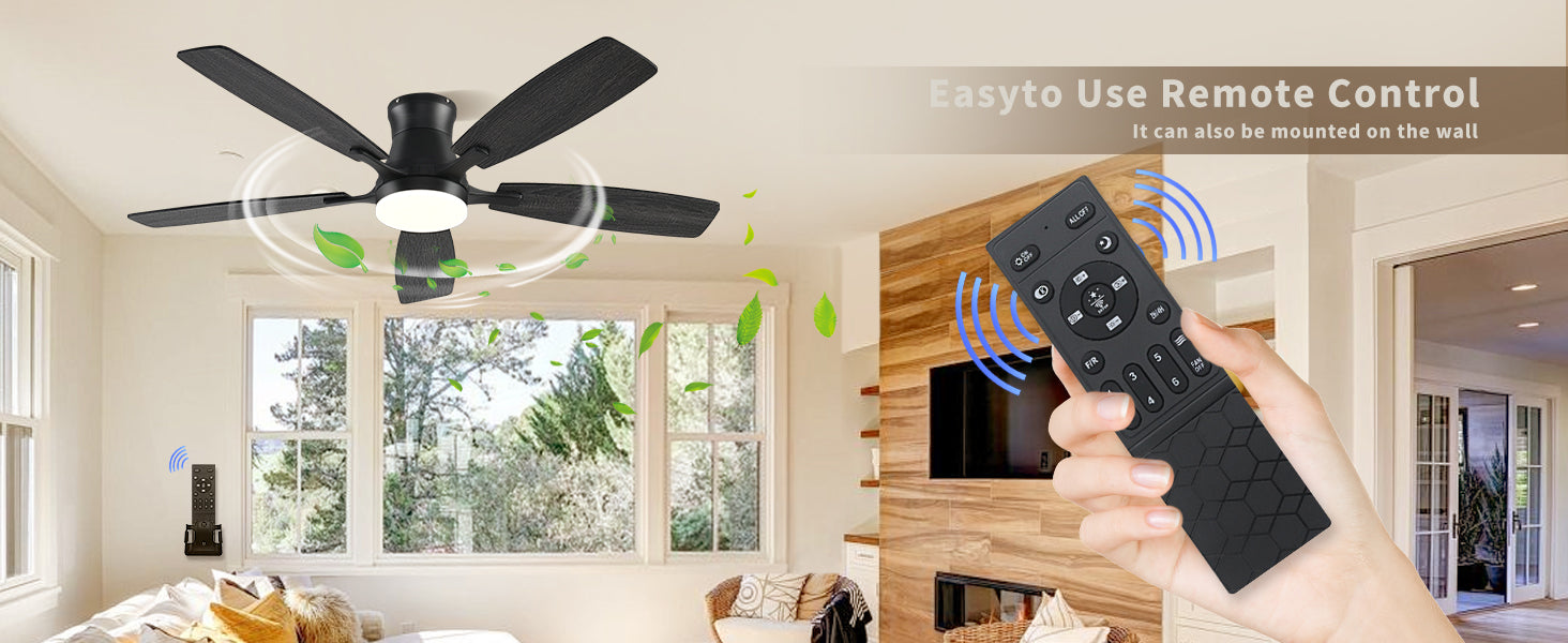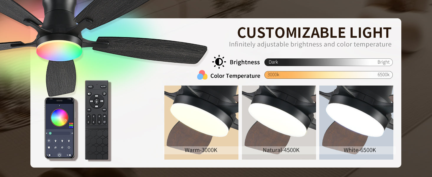 • 【Ceiling Fan with Remote/APP Control】: Control the flush mount ceiling fan via the remote control or the "fan lamp pro" app on your phone. Easily adjust light brightness and color, 6-speed settings, 1/2/4H timers and the fan and light separately ON/OFF, allowing you to easily adjust settings from anywhere in the room or outdoor places for optimal comfort.(Tips: After fixed, the remote control can be used as a wall switch)