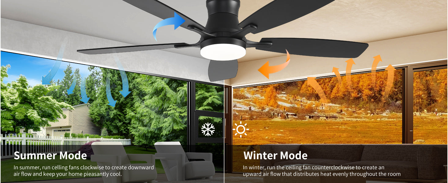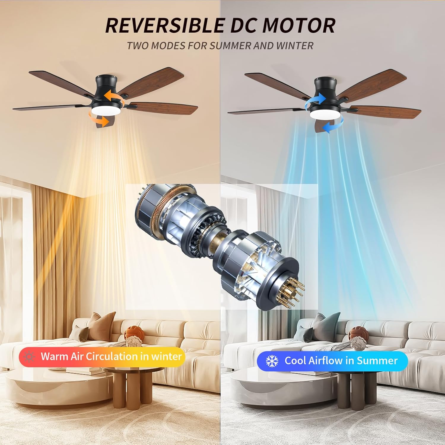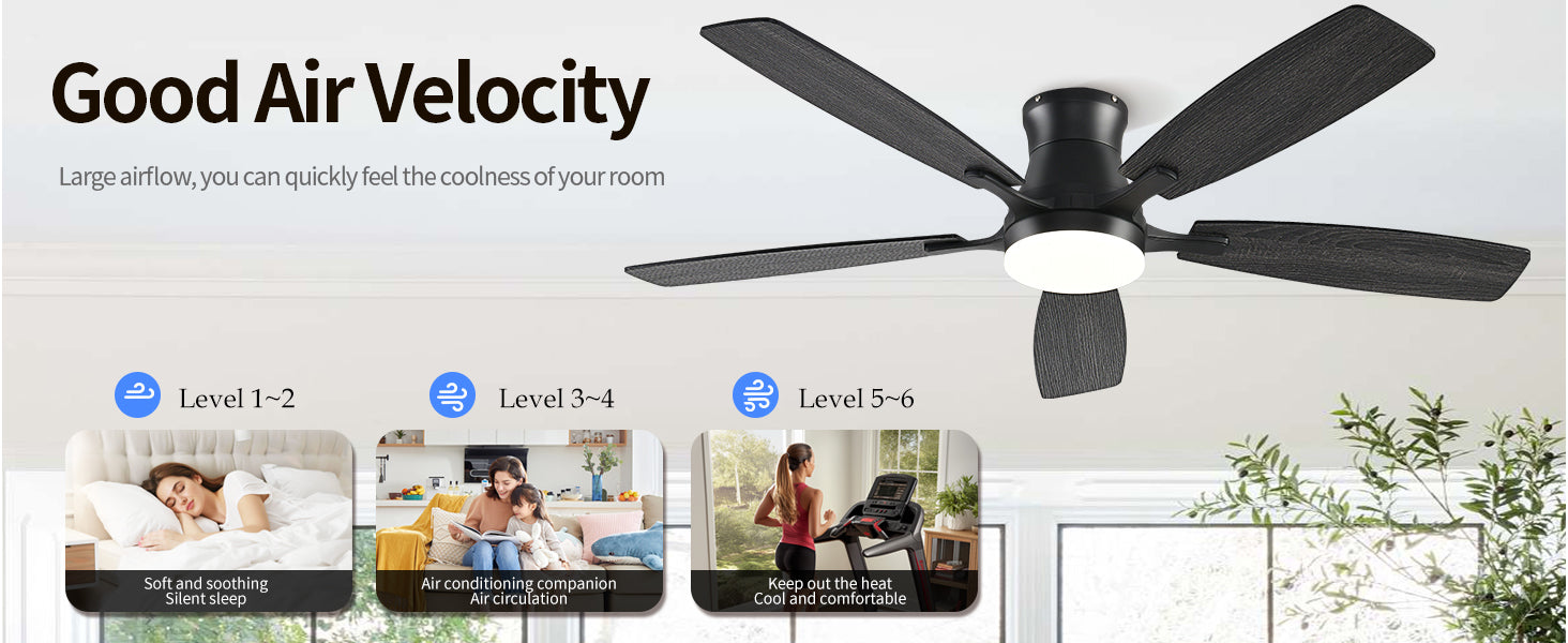 • 【6-speed Adjustable Reversible DC Motor】Our low profile ceiling fan feature high-quality high-speed DC motors with 6 adjustable speed Settings, allowing you to choose between gentle breezes, natural wind or strong airflow. The reversible design improves air circulation, keeping it warm in winter and cool in summer, reducing power loss by up to 80% compared to traditional fans.