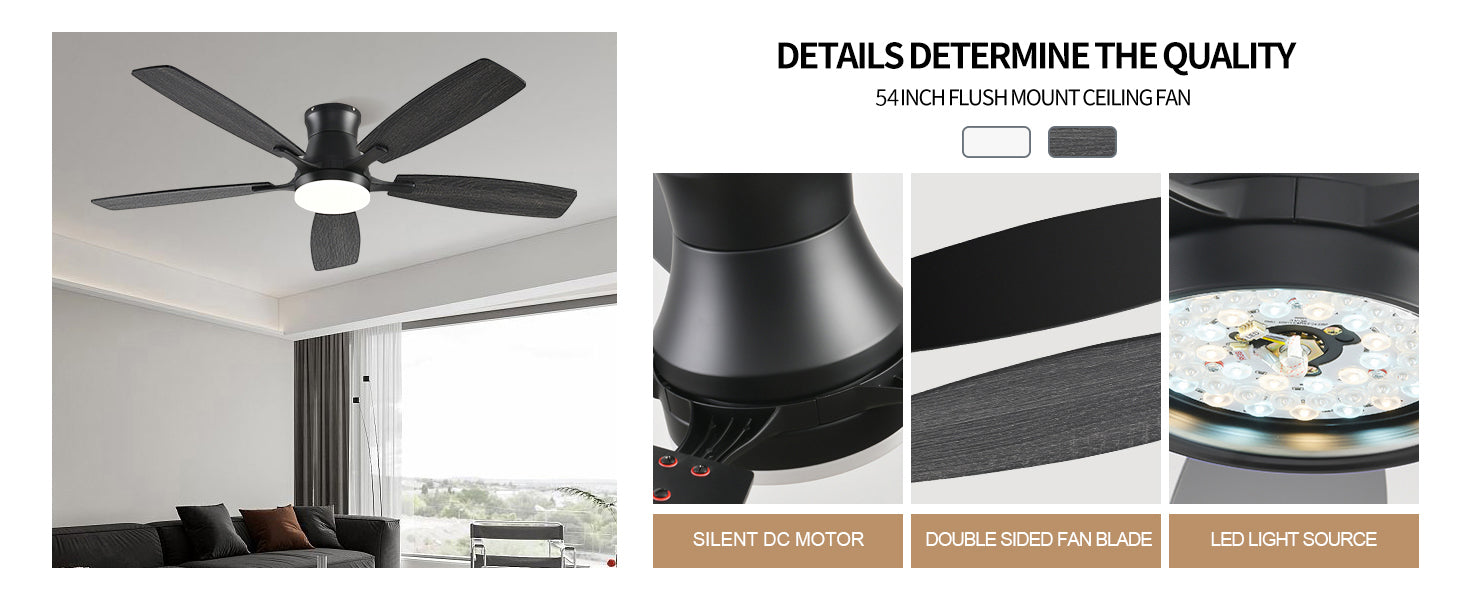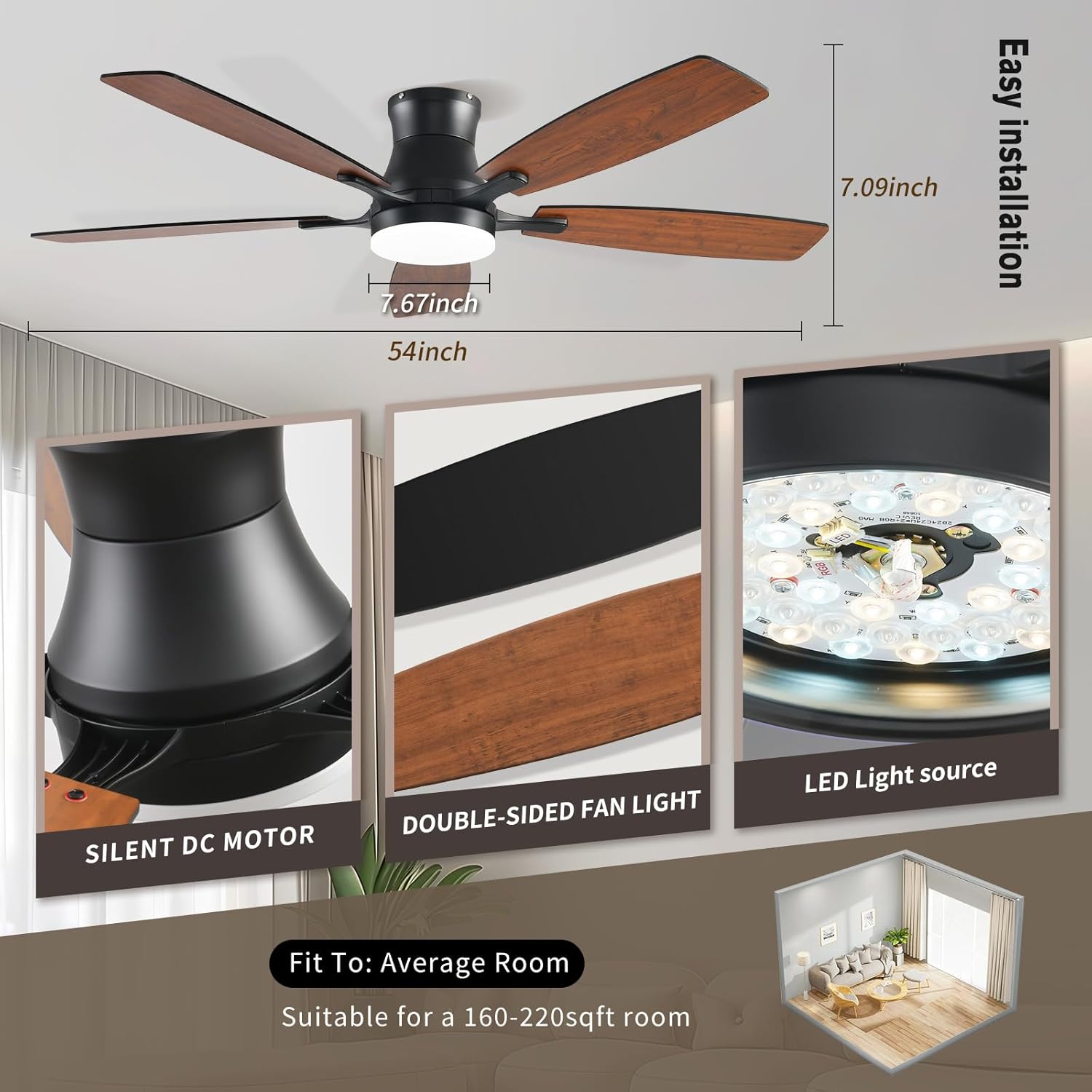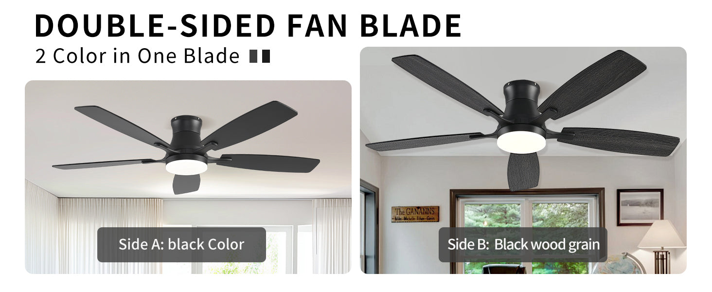 • 【Silent Double-sided Ceiling Fan】:Our 54inch large ceiling fan features 5 double-sided blades. You can match the appropriate side of the blades according to the decoration style. It not only provides ample airflow and illumination but also serves as a stunning home decorative item. When the ceiling fan is in operation, the noise level is as low as 30 decibels, which is almost silent. Its aim is to offer you a comfortable sleeping environment and a tranquil living atmosphere, making it suitable for families with babies or the elderly.
