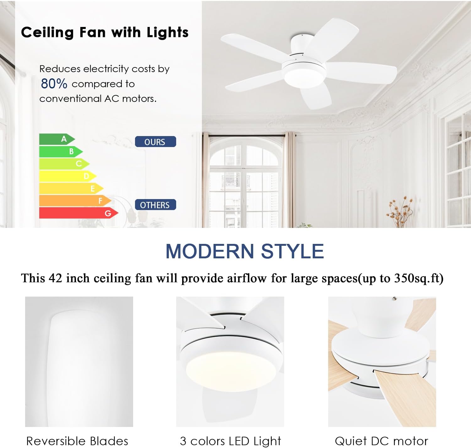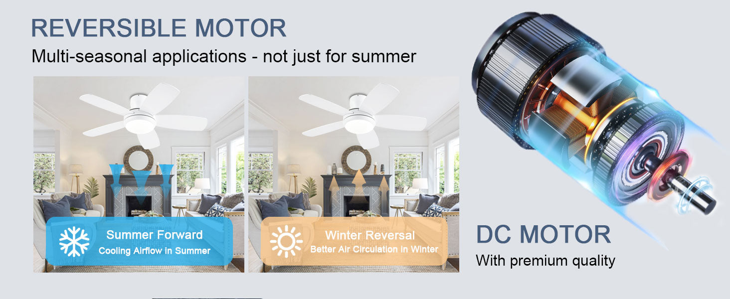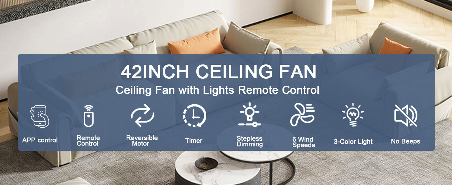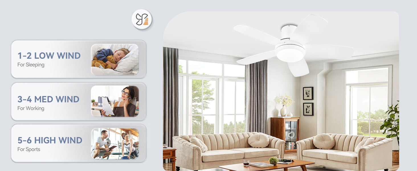 • 【Quiet Reversible Motor Ceiling Fan】: The high-quality energy efficient ceiling fan provides a comfortable experience throughout the year. Operating quietly with a noise level below 35dB, it offers forward and reverse modes. In summer, enjoy cool strong winds to dissipate heat, while in winter, promote air circulation to dispel cold.